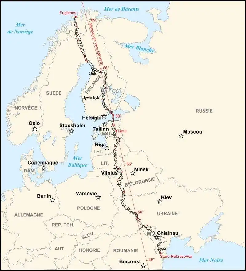 Геодезична дуга Струве - один із 8 українських об'єктів внесених до списку всесвітньої спадщини ЮНЕСКО. (Карта: Вікіпедія)