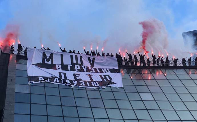 Під час заходу на Майдані Незалежності був розгорнутий банер із написом "Мішу в Грузію, Пєтю в Гагаузію".