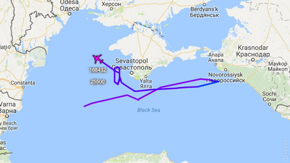 Одночасно з ним працював пілотований літак-розвідник P-8A Poseidon, він пройшов біля окупованого Криму.