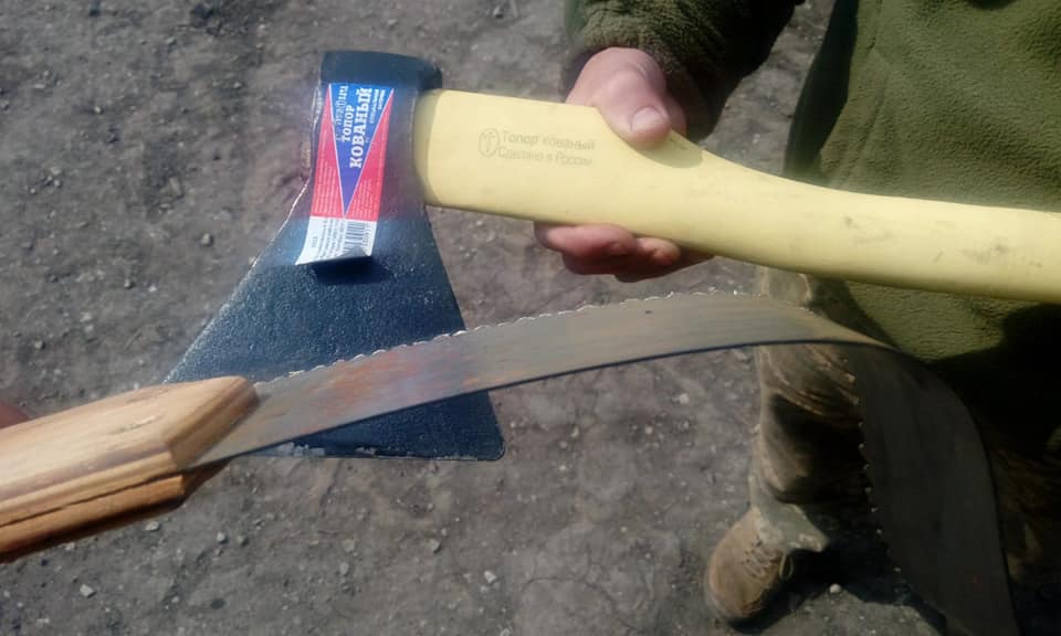 Бойові розвідувальні машини, які передали українським військовим, укомплектували сокирами. виробленими в Росії у жовтні 2017 року.