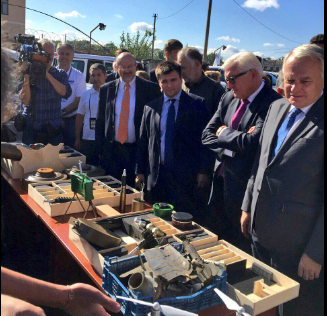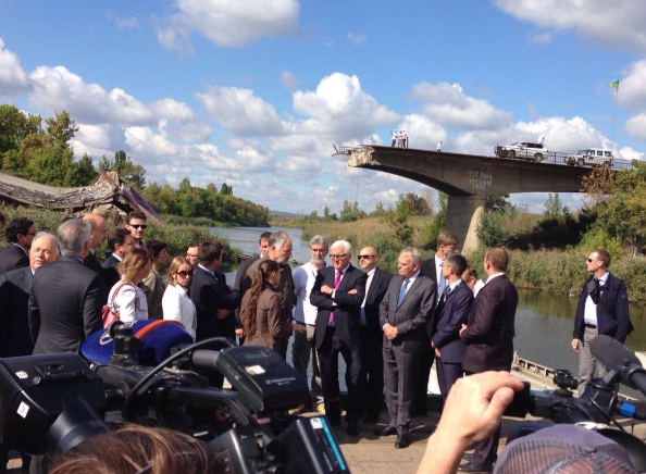 Міністри закордонних справ Німеччини та Франції Франк-Вальтер Штайнмаєр та Жан-Марк Еро прибули сьогодні в зону АТО. Їх супроводжують глава українського МЗС Павло Клімкін та віцеспікер Верховної Ради Ірина Геращенко.