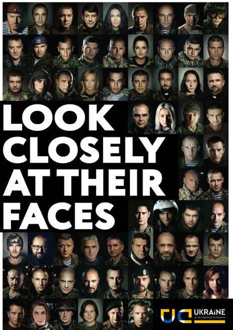 «Подивіться уважно на обличчя героїв», – йдеться у заголовку публікації, яка зображає портрети 63-х українських чоловіків і жінок, що проявили відвагу в захисті Батьківщини.