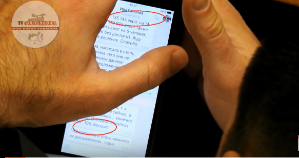 На відео видно, як спочатку Добкін читає про умови дорогого відпочинку у повідомленні насмартфоні, проте потім помічає стеження і прикриває екран рукою. Через те, що депутат закрив частину екрану, невідомо, куди саме їдуть Добкін та ще 5 осіб. Відомо, що відпочиватумуть вони два тижні та коштуватиме це 135 тисяч євро (3,5 мільйона гривень).