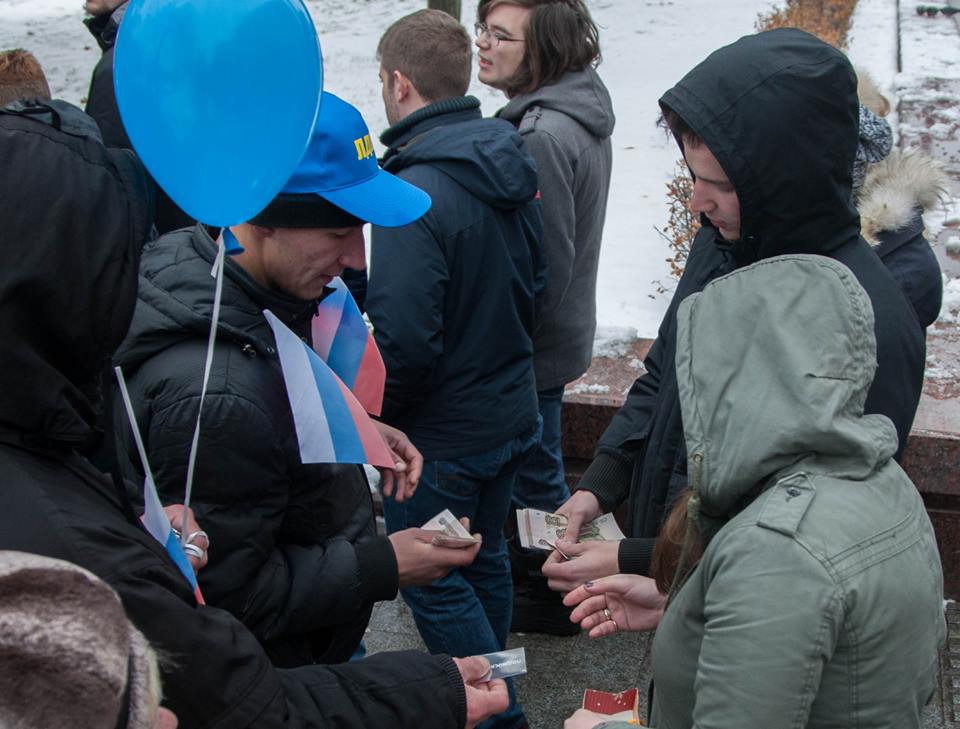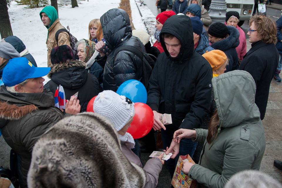 Утім, для телекартинки «масової народної радості» цих пропутінських радикалів було недостатньо, тож напередодні в мережі Інтернет з’явилися повідомлення із закликами приходити на ходу за 300 чи 500 рублів.