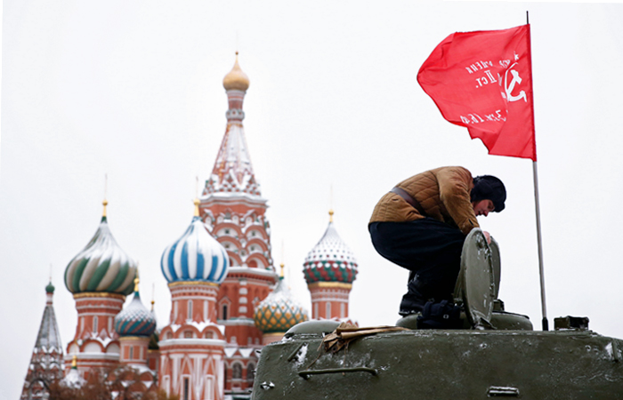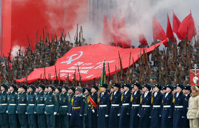 І хоча Кремль проводить паралелі нинішнього маршу лише з військовим парадом 1941 року, чисельні червоні прапори на Червоній площі говорять про те, що цей марш є нагадуванням про захоплення влади більшовиками на чолі з Леніним у 1917 році, які радянська історіографія пафосно називала «Великою Жовтневою революцією».