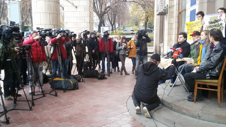 Двом активістам ГО "Відсіч Катерині Чепурі та Сергію Осначу вдалося прорватися на засідання щоб особисто запитати в голови Нацради Юрія Артеменка, хто писав, ухвалював та розміщував на сайті Нацради незаконний меморандум.