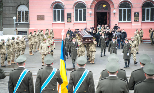 На церемонію прощання із військовослужбовцем прийшли його товариші по службі, родичі, друзі, перші особи держави, іноземні військові аташе.