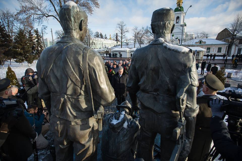 Президент Петро Порошенко, Прем'єр-міністр Володимир Гройсман, голова Верховної Ради Андрій Парубій, міністр оборони Степан Полторак, начальник Генштабу ЗСУ Віктор Муженко, інші представники влади, а також воїни-афганці та небайдужі громадяни поклали квіти до пам'ятника воїнам-інтернаціоналістам, що поруч із Києво-Печерською Лаврою.