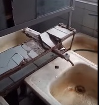 Після цього, автори відео денструють казарму, в якій не вистачає тумбочок і навіть табуреток.