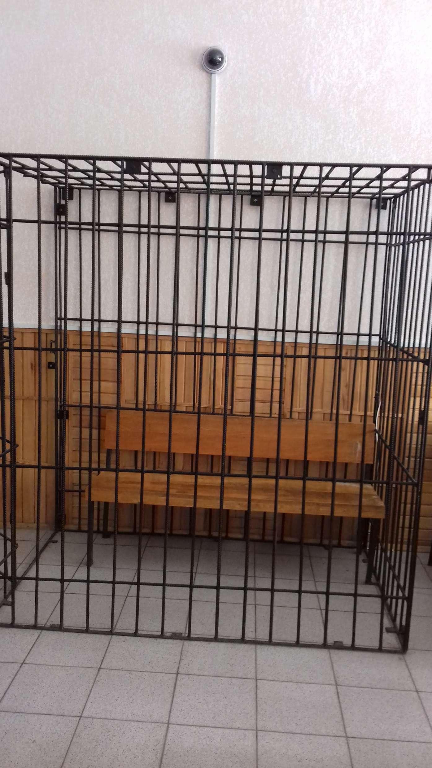 Людей, яких доставляють до суду, тримають у зачинених металевих шафах: без доступу до освітлення та без належної вентиляції. Повітря та світло потрапляють всередину через прорізані у шафах отвори розміром 10х20см.