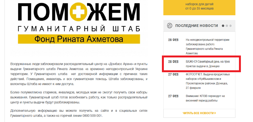 Варто відзначити, що спочатку фонд інформував, що на Ворошилівському, Калінінському та Київському пунктах видачі допомоги проведуть "санітарні дні".