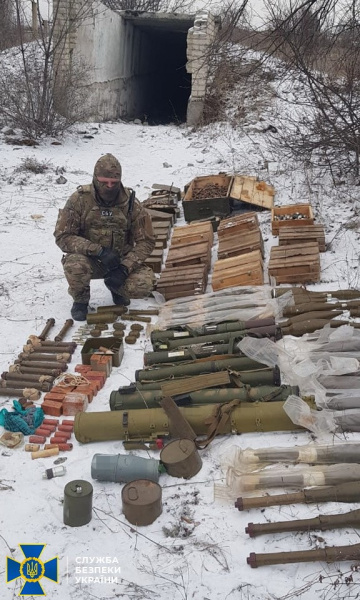 Служба безпеки України виявила в Луганській області арсенал зброї, боєприпасів і вибухівки. Дану зброю залишили представники диверсійної групи бойовиків, яка причетна до підривів в 2014 році об'єктів критичної інфраструктури на Донбасі.