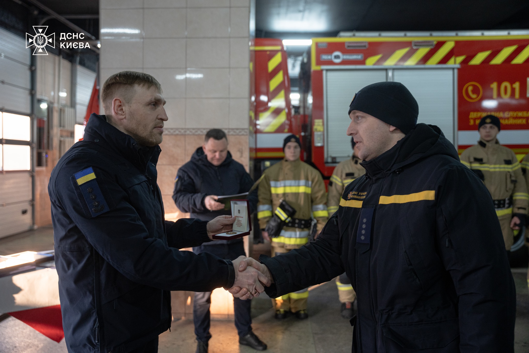 Зокрема нагрудний знак «Знак Пошани» отримав Василь Чорненький, начальник караулу 2 ДПРЧ Києва. Нагрудний знак «За відвагу в надзвичайній ситуації» отримали: Максим Кривоніс, пожежник-рятувальник 2 ДПРЧ; Роман Мажара, командир відділення 6 ДПРЧ; Василь Серга, командир відділення 5 ДПРЧ.