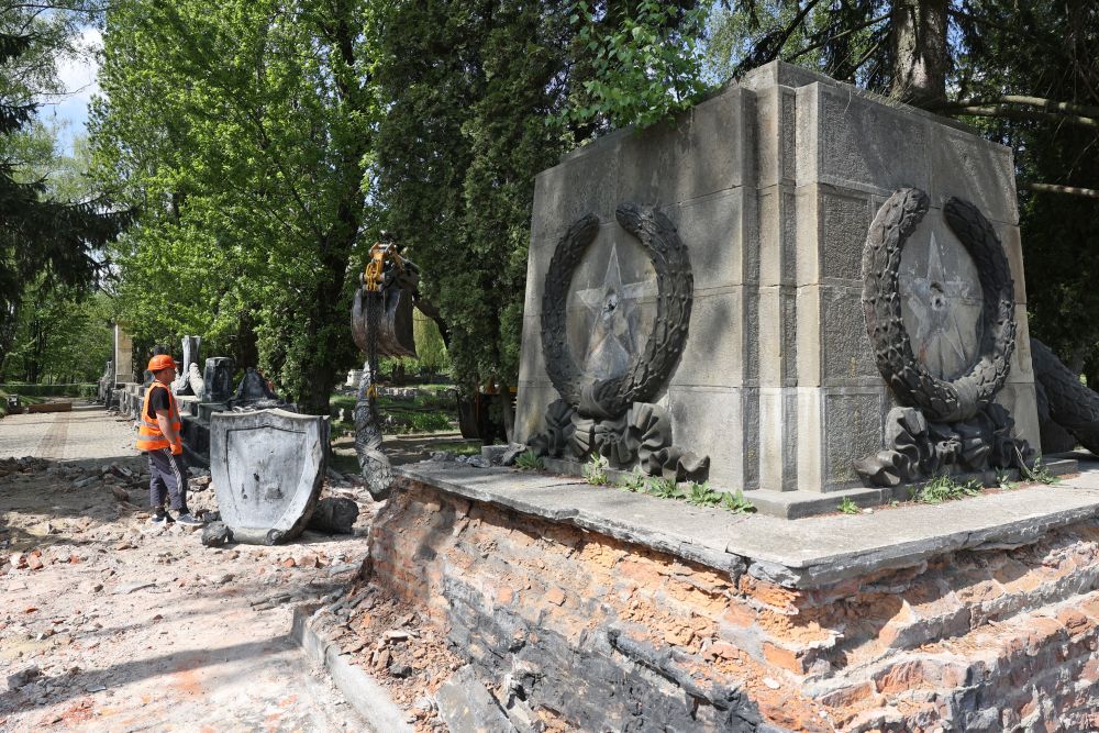 "Війна пришвидшила багато процесів, зокрема щодо питання радянських військових поховань. Нещодавно ми завершили дослідження і ексгумацію з території колишнього марсового поля. Ми перепоховали близько 2 тис. останків людей з християнською повагою. І сьогодні розпочинаємо процес, коли забираємо останній маркер радянських поховань у Львові – поховання з Пагорба Слави", - повідомив керуючий справами виконавчого комітету Львівської міської ради Євген Бойко.