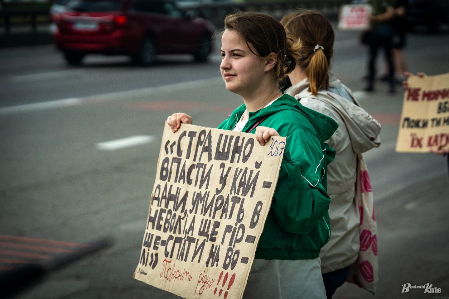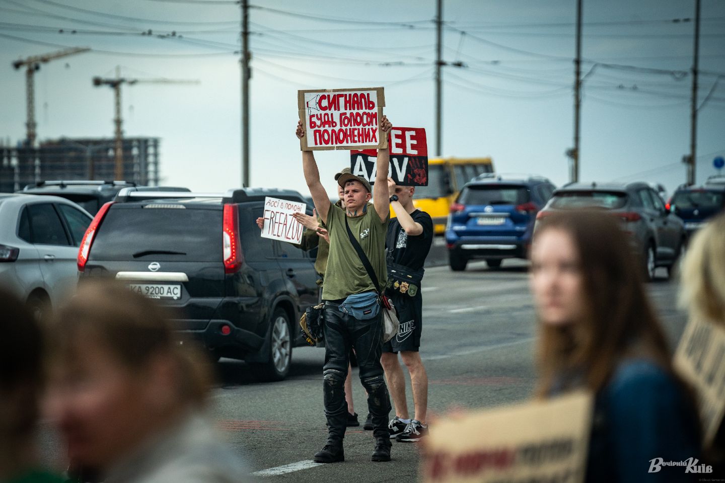 У Києві, в неділю, 4 травня, усі водії та пасажири, що перетинали Дніпро по Північному мосту могли були свідками акції «Не мовчи! Полон вбиває».