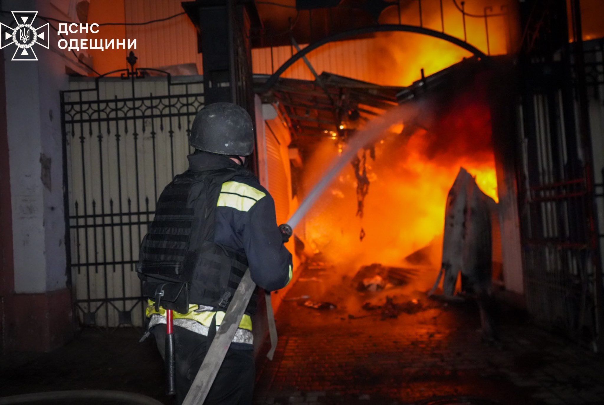 Палає знаменитий одеський Привоз. (Фото: Фейсбук Головне управління ДСНС України в Одеській області)