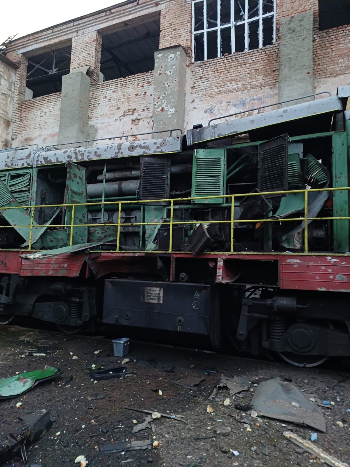 "У Полтаві уражені локомотивне депо, дистанція енергопостачання, тягові підстанції. Пошкоджено адміністративні та складські приміщення, рухомий склад. Виникли пожежі, які ліквідовані рятувальниками. На щастя, без постраждалих.