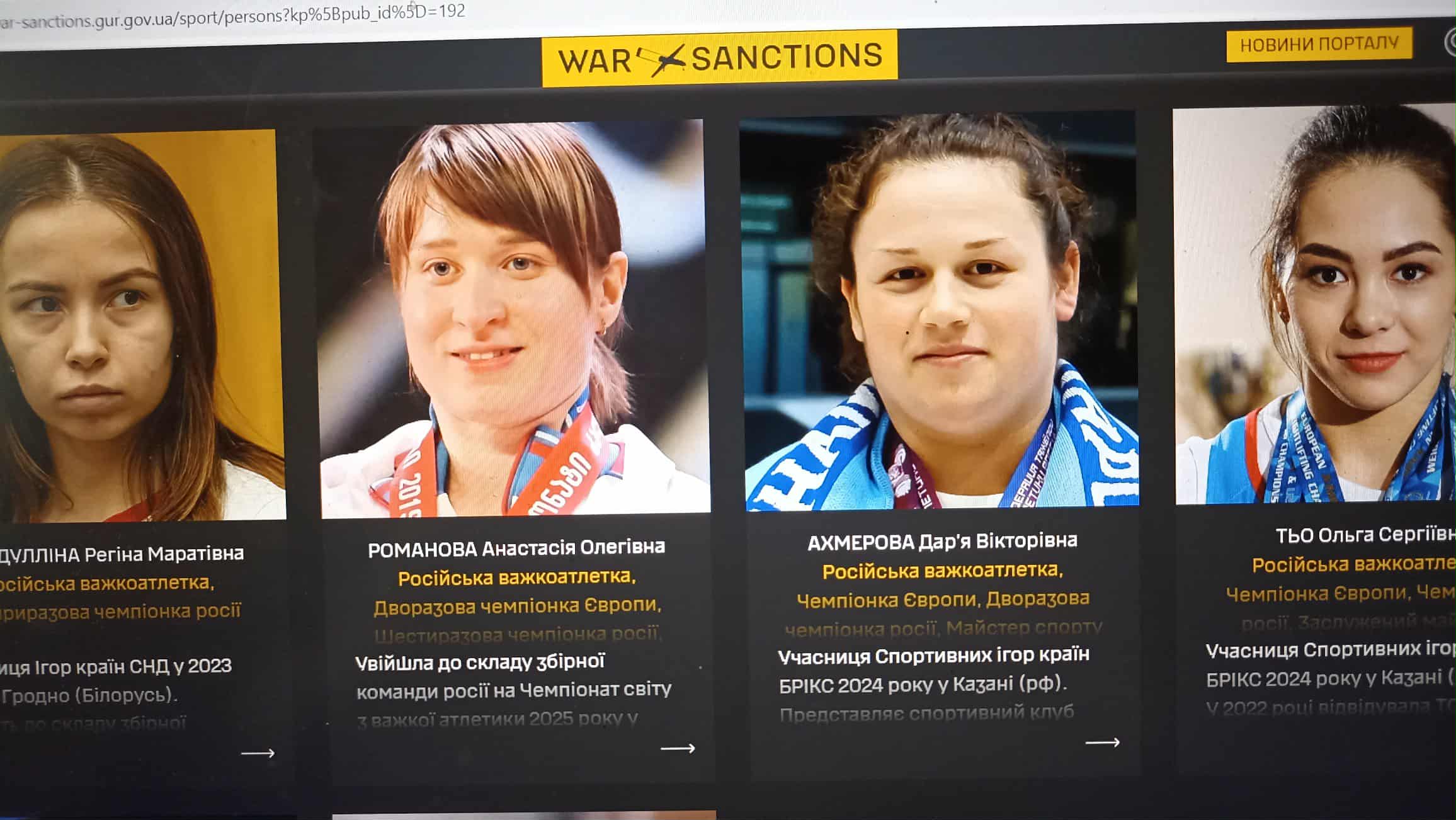 Яна Сотієва, рєгіна шайдулліна та Анастасія Романова — російські важкоатлетки, які брали участь у тренувальних зборах на тимчасово окупованих територіях України та були заявлені до складу збірної РФ на Чемпіонат світу з важкої атлетики 2025 року. Після офіційного звернення України Міжнародна федерація важкої атлетики (IWF) не допустила до змагань цих спортсменок, а також ще десятьох представників Росії та Білорусі.
