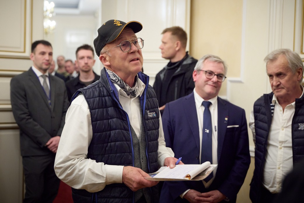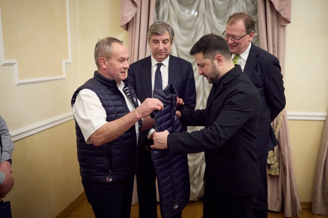 Президент зустрівся з французькими рибалками, які забезпечують українські міста антидроновими сітками. (Фото: сайт ОП)