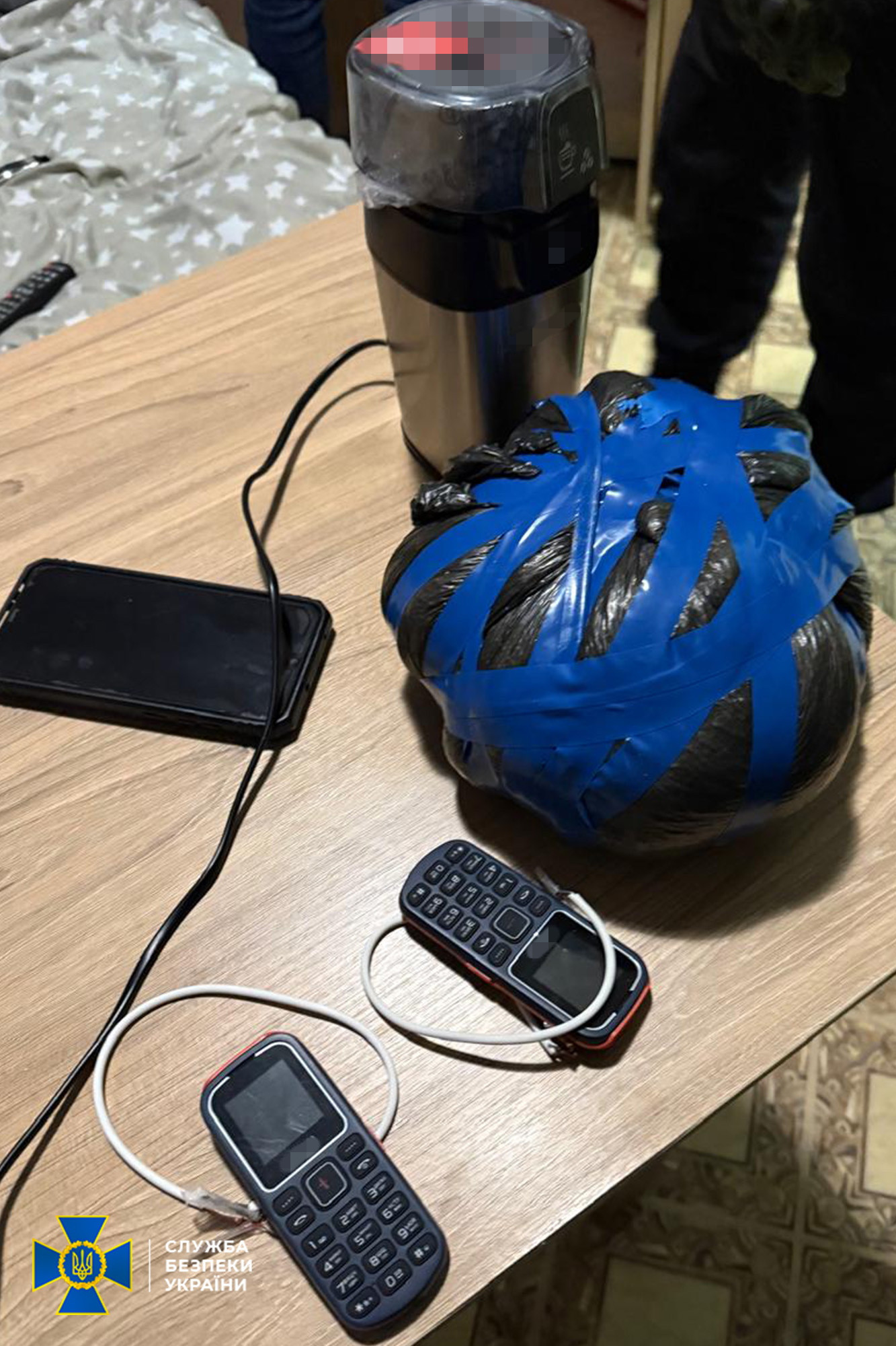 Під час обшуків у тимчасовому помешканні затриманого вилучили комплектуючі до СВП і смартфон із доказами роботи на фсб. (Фото: сайт СБУ)