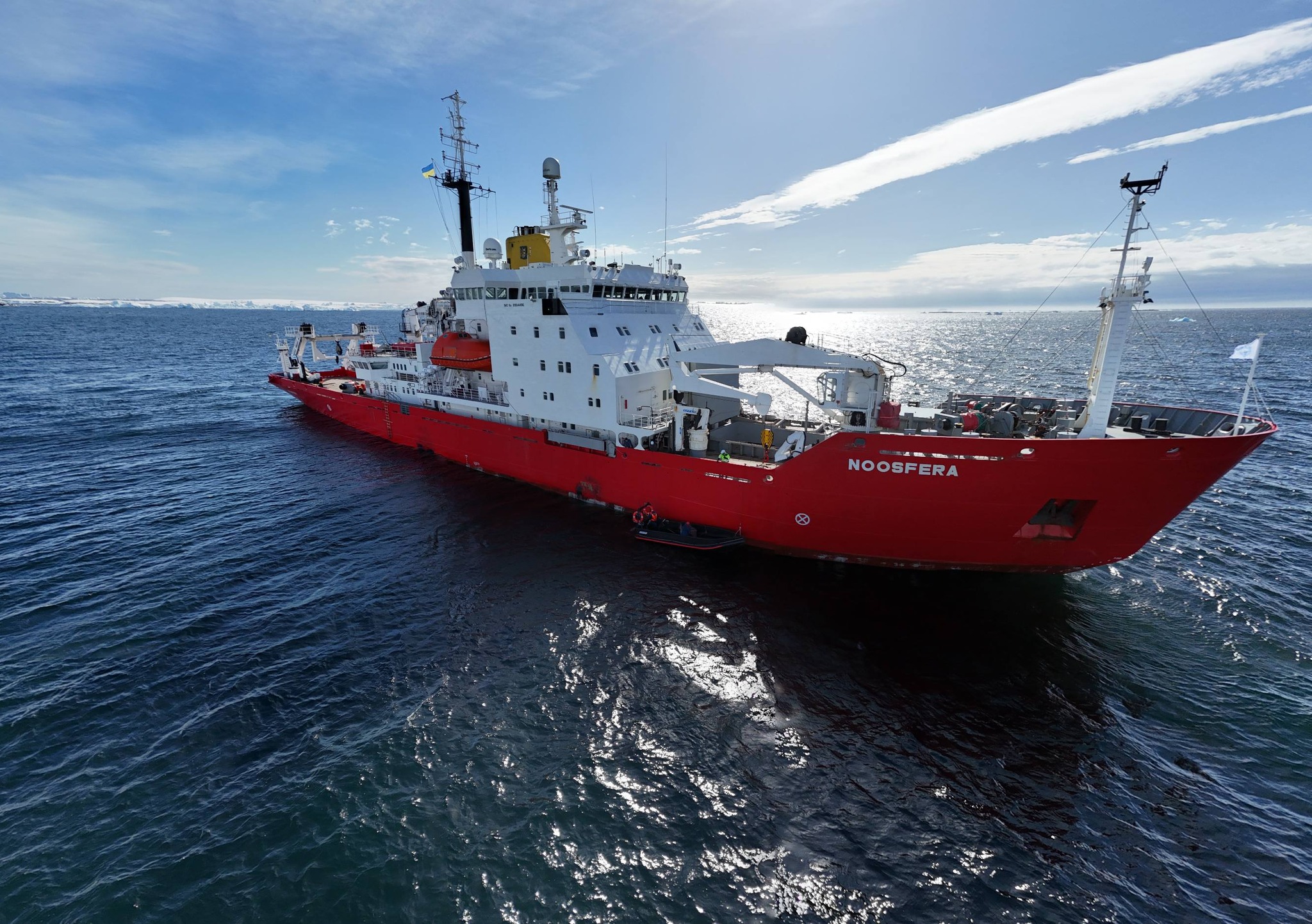 Нагадаємо, що судно-криголам «Ноосфера» (раніше RRS James Clark Ross) є флагманом українського науково-дослідного флоту. Належить воно НАНЦ.