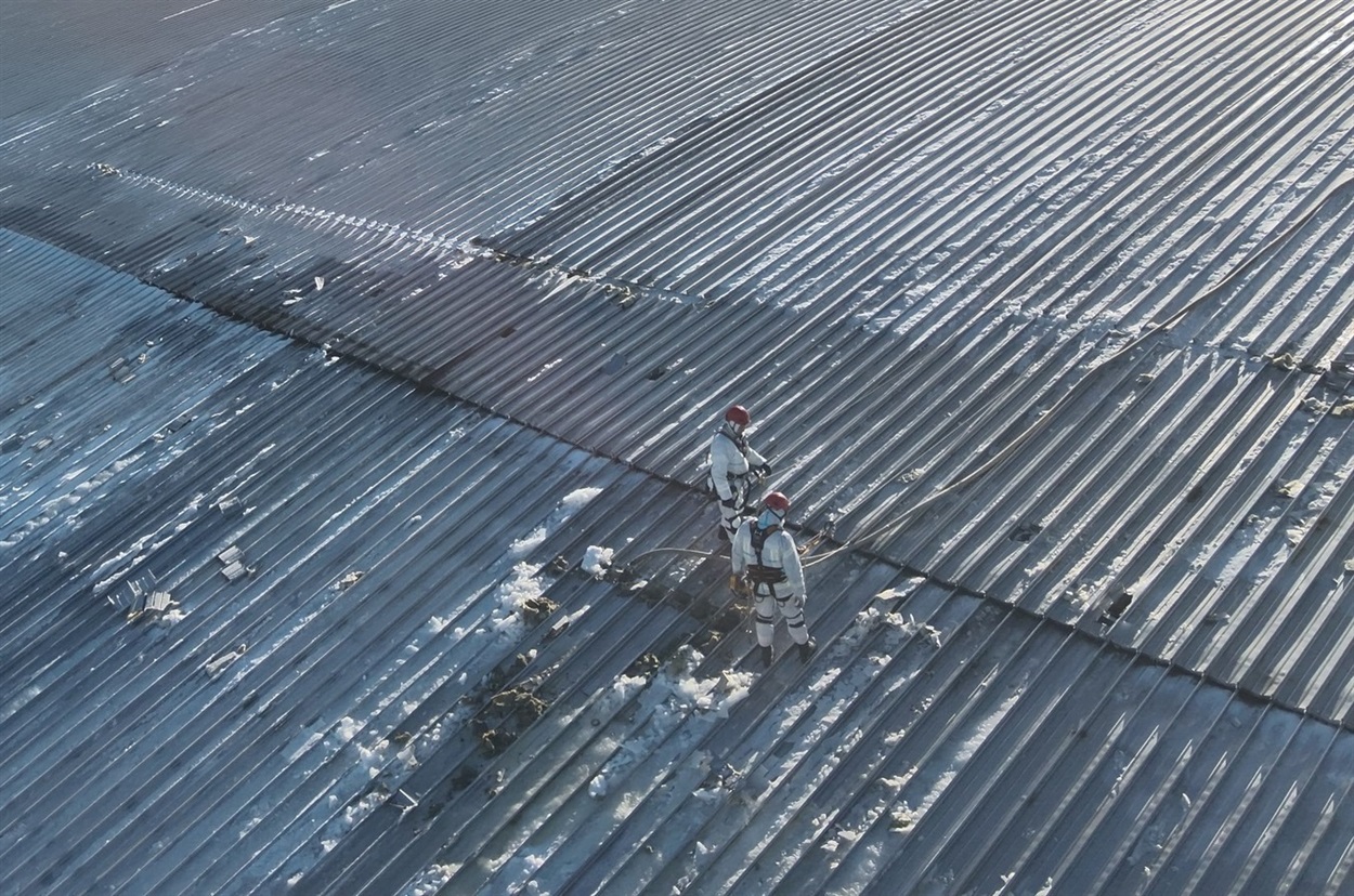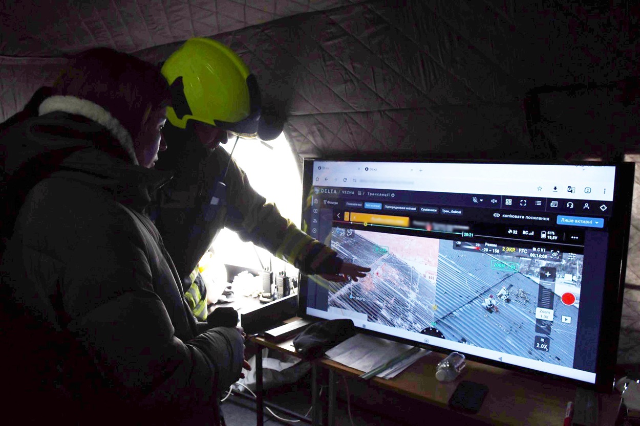 Ударний дрон пробив захисну арку над енергоблоком ЧАЕС, 14.02.2025. (Фото ДСНС України)