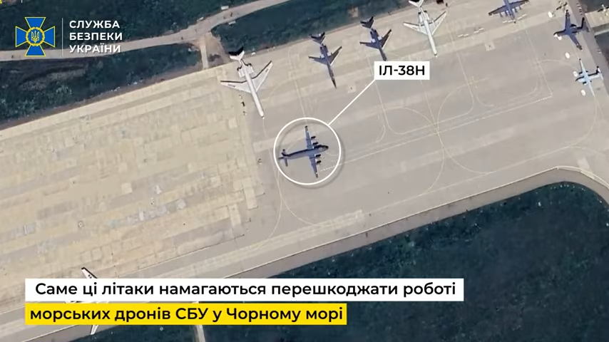 «При підготовці до удару по підводному човну співробітники 13-го Головного управління Департаменту військової контррозвідки СБУ уразили модернізований літак-розвідник Іл-38Н («Sea Dragon») на авіабазі Єйськ.