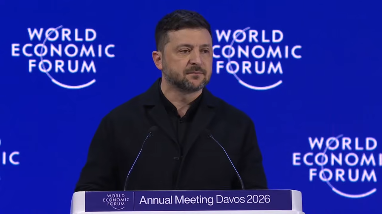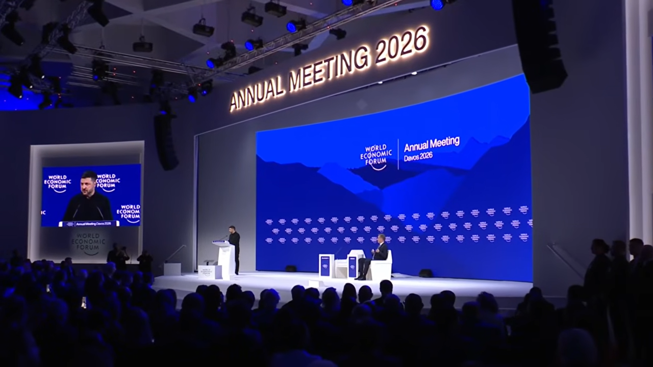 Виступ Володира Зеленського 22 січня на Всесвітньому економічному форумі в Давосі. (Фото: скріншот з відео)
