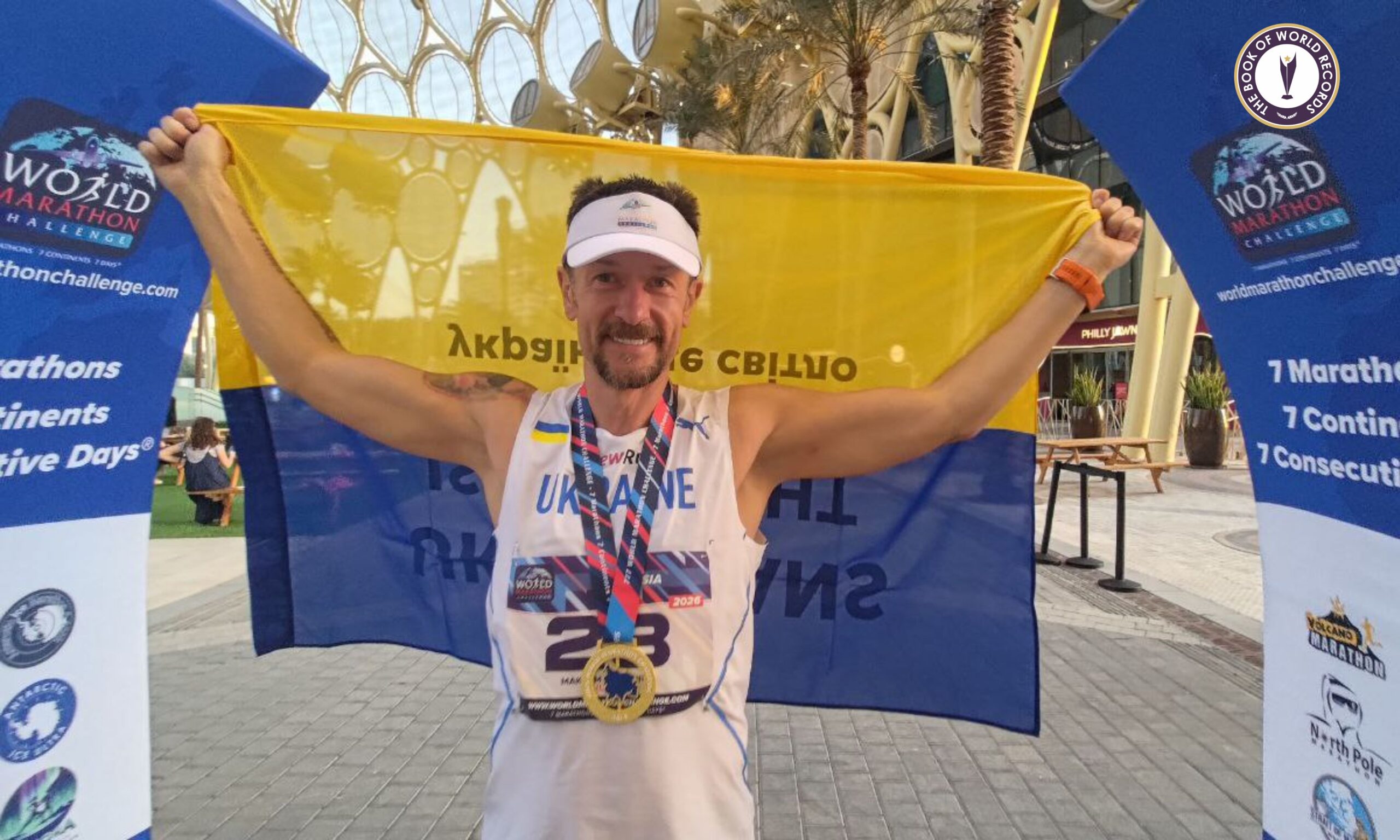 Протягом тижня спортсмен подолав сім класичних марафонських дистанцій по 42 кілометри 195 метрів в Антарктиді, Кейптауні (Африка), Перті (Австралія), Дубаї (Азія), Мадриді (Європа), Форталезі (Південна Америка) та Маямі (Північна Америка).