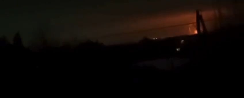 На оприлюдненому росіянами відео зафіксовано настання блекауту, удари по підстанції та потужні світлові спалахи під час вибухів.