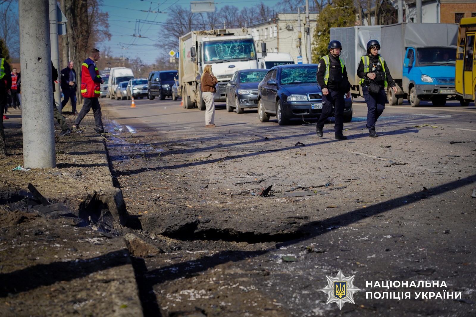 На місцях влучань працюють слідчо-оперативні групи поліції, вибухотехніки. Правоохоронці проводять огляди територій та фіксують наслідки обстрілів.