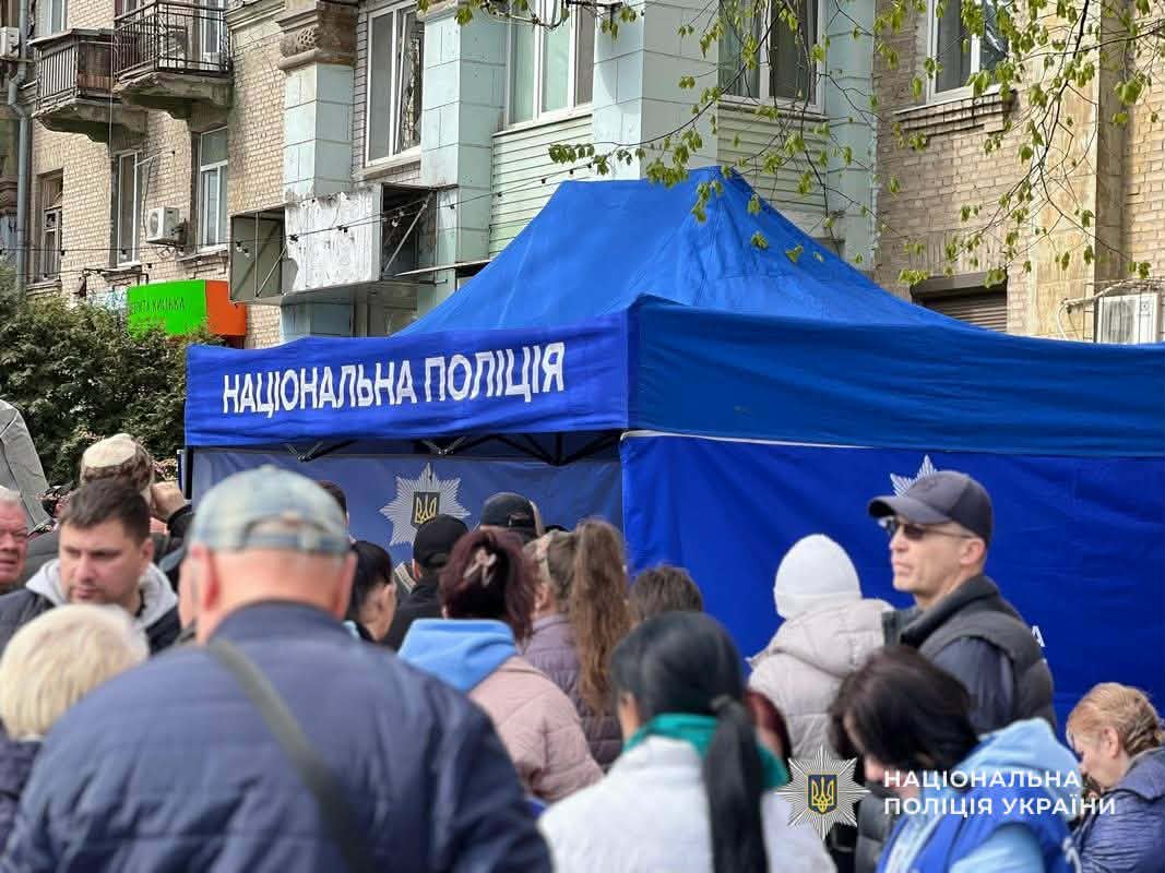Зазначається, що на місцях влучань працюють мобільні пункти прийому громадян. Поліцейські забезпечують оформлення заяв та надають необхідні роз’яснення щодо подальших дій.