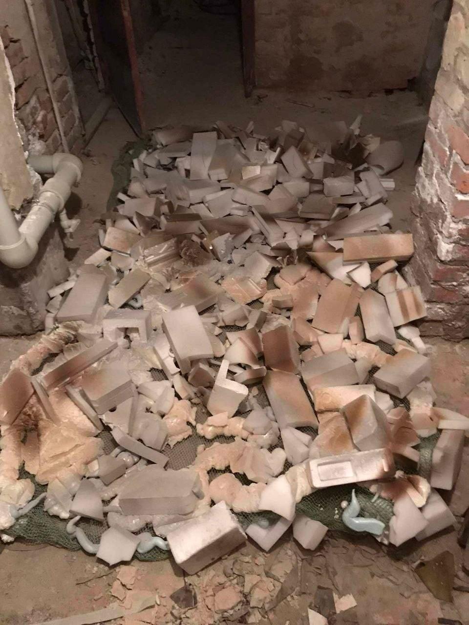 Фарбовані поролон і пінопласт вдало імітують биті будівельні матеріали