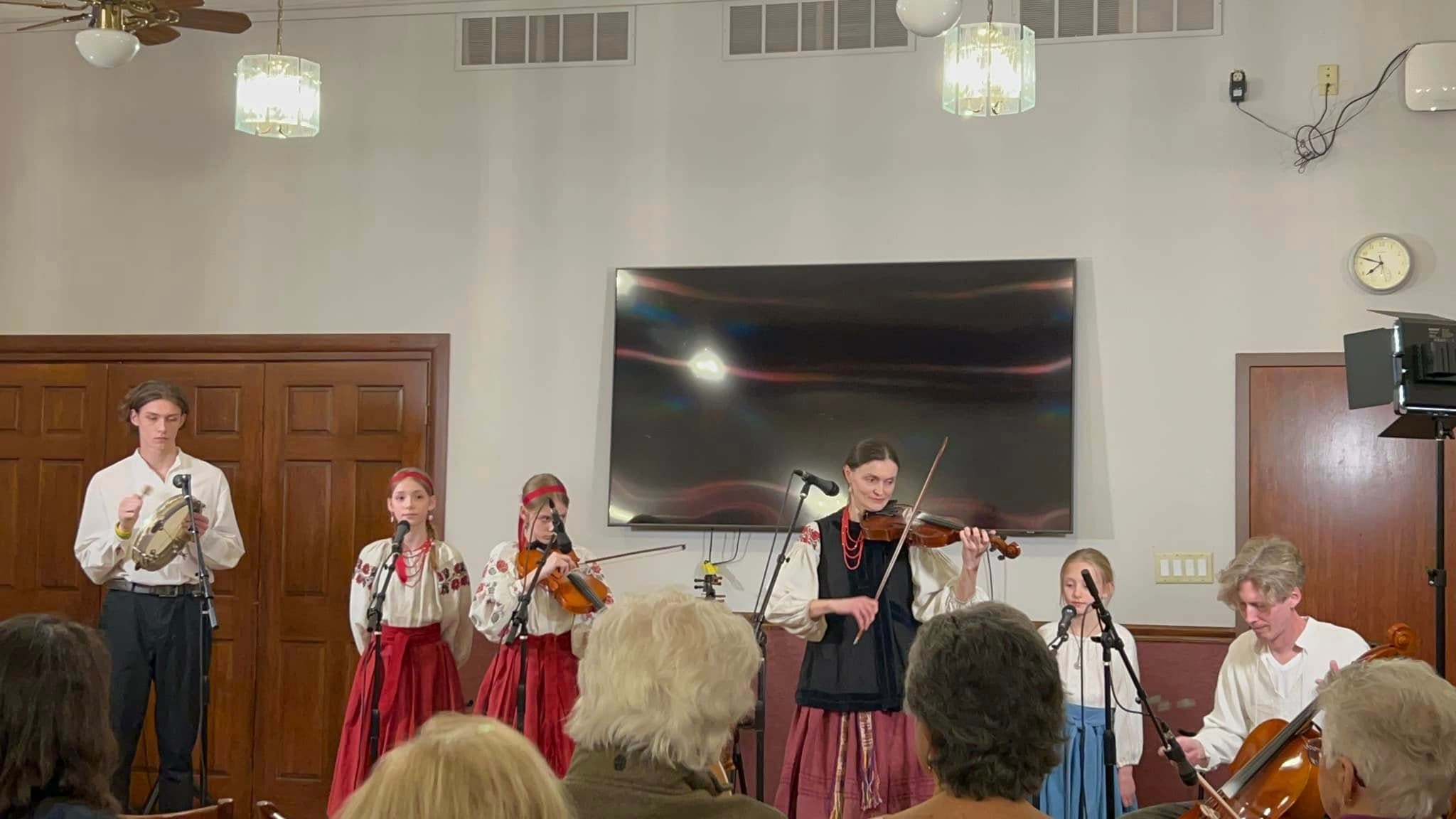 Легендарна пісня «Ой там, на горі». Виступ родини Фединських перед дітьми та вчителями українського садочка «Світличка» (Пенсільванія).