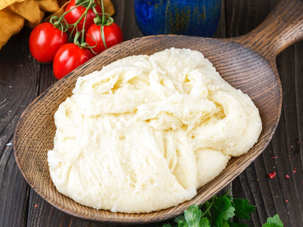 Це кукурудзяна каша з місцевим сиром сулугуні. Проте, на відміну від мамалиги (яку також готують у Грузії, але називають гомі), вже готову кашу не посипають сиром, а навпаки — кашу варять разом із сиром. Але про все по порядку.