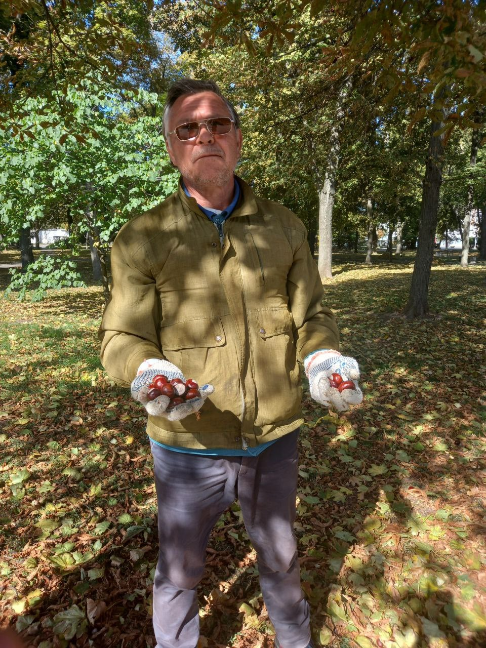 А пенсіонер Василь Іванович хвалиться, що на каштанові заробітки робить запаси на зиму — купує то цукор, то олію, а іноді балує свою дружину шоколадкою.