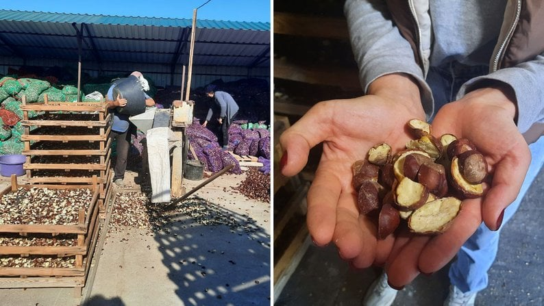 — Двісті-чотириста кілограмів. Сьогодні прийняли — сьогодні ж і продали оптовикам. Вони самі у нас забирають. Ми не маємо умов для висушування плодів, як великі заготівельники. У нас тому й ціна невисока, бо ми реалізуємо малими партіями. Ціна на каштани залежить від обсягів.
