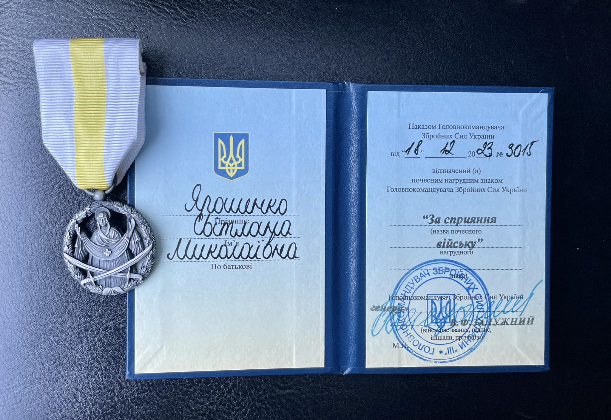 P. S. Про вдячність військових адвокатці Світлані Ярошенко красномовно розповідає «картина» з шевронів різних бригад, яка висить у її робочому кабінеті. Її доповнюють почесний нагрудний знак головнокомандувача Збройних сил України Валерія Залужного «За сприяння війську» та спеціальна відзнака Полтавської обласної ради за волонтерську діяльність. Приєднавшись до волонтерського руху «Адвокати ЗСУ», вона тривалий час надавала юридичну допомогу військовим та їхнім родинам безоплатно. «Оплату» приймала сувенірами — шевронами і відстріляними гільзами...