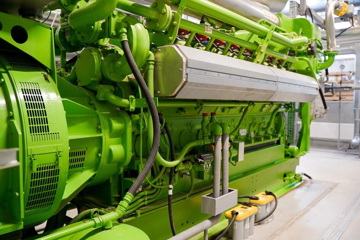 Довідково. Газопоршневий генератор — це енергетична установка, що використовує двигун внутрішнього згоряння для перетворення енергії газу (природного, зрідженого або біогазу) на електричну, часто виробляючи також тепло (когенерація) або навіть холод (тригенерація), забезпечуючи енергетичну незалежність для основного, резервного або спільного виробництва енергії та тепла.