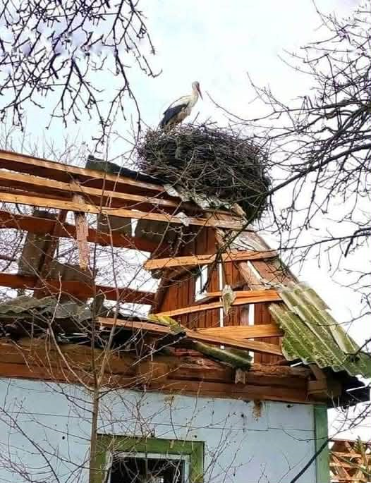 Нове гніздо на зруйнованій хаті.