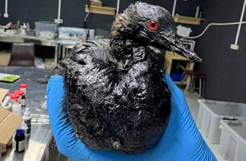 Через обстріли стався розлив рослинної олії біля порту «Південний». Одна з постраждалих пташок.