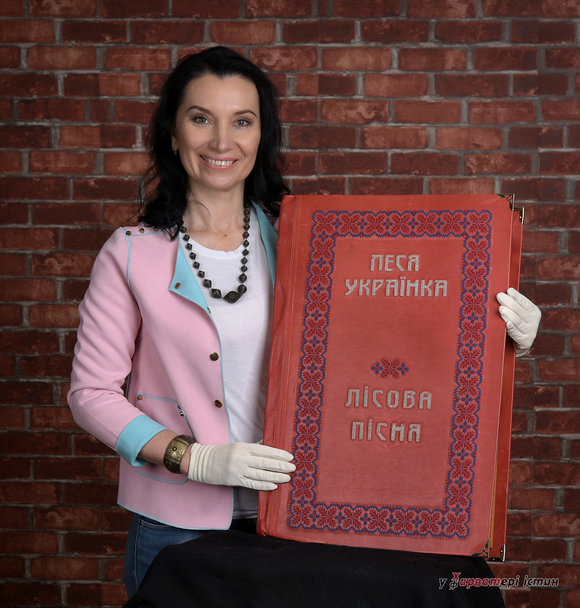 Пан Харват також оприлюднив кілька світлин з фотосесії майстрині з Рівного і вишитого її руками фоліанту.