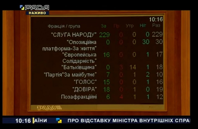 Фракція "Батьківщина" принципово не голосувала за відставку Авакова. Також не стала голосувати за це фракція "Опозиційної платформи – За життя".