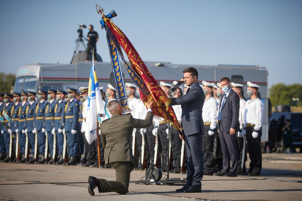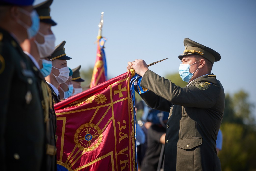 Глава держави також вручив бойові прапори та стрічки до них командирам частин, які отримали почесні найменування за бойові заслуги, мужність, високий професіоналізм та з огляду на зразкове виконання поставлених завдань особовим складом.