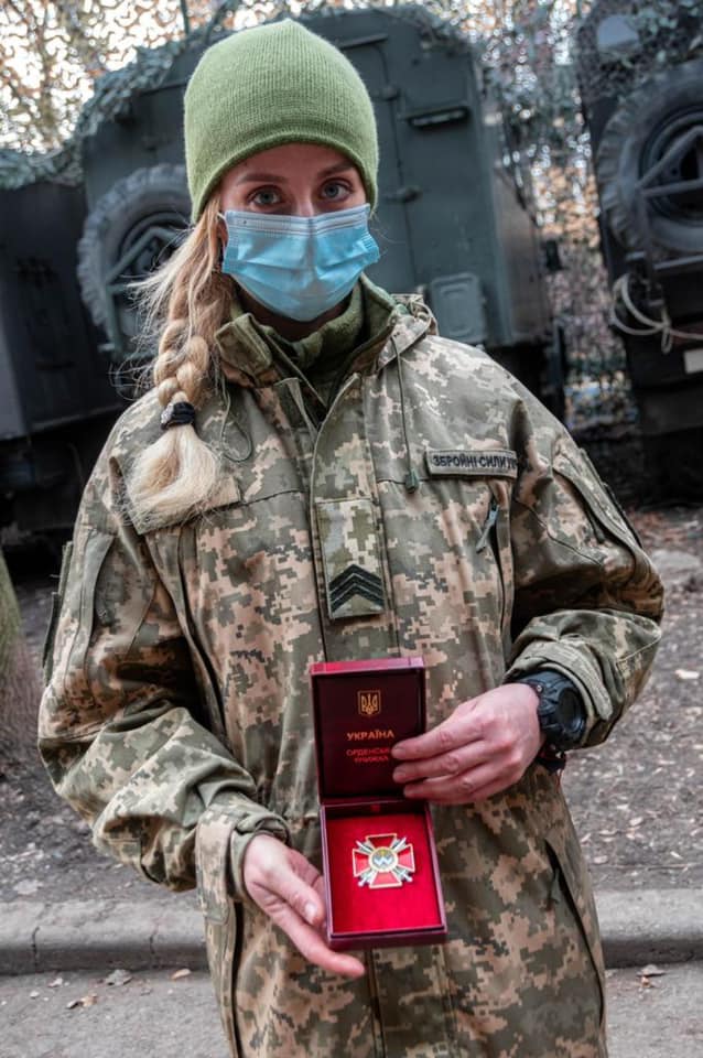 Контрактниця «Едельвейсів», 10-ї гірсько-штурмової бригади нагороджена, згідно з указом Президента України № 149/2021 «за особисту мужність і самовіддані дії, виявлені у захисті державного суверенітету та територіальної цілісності України».