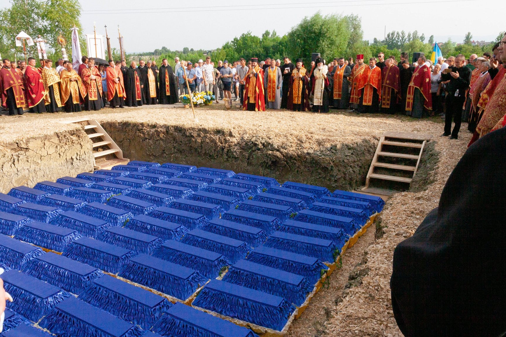 На Львівщині, в місті Дрогобич перепоховали останки 78 людей. Їх було знайдено під час пошукових робіт у 2018 -2019 роках у колишньому тюремному саду (сьогодні приміщення Дрогобицького педуніверситету).