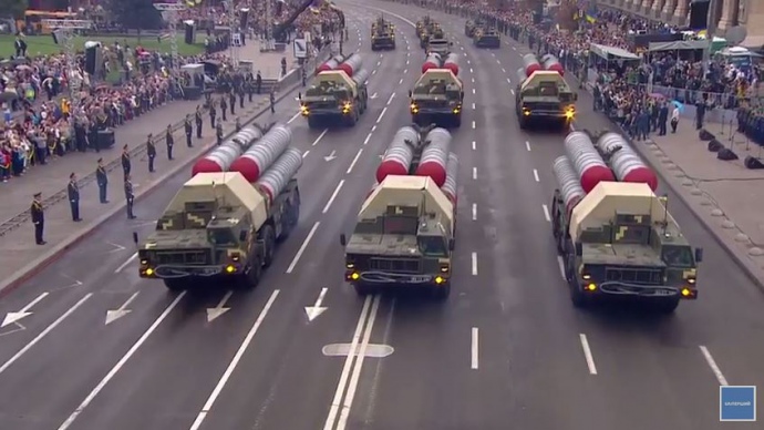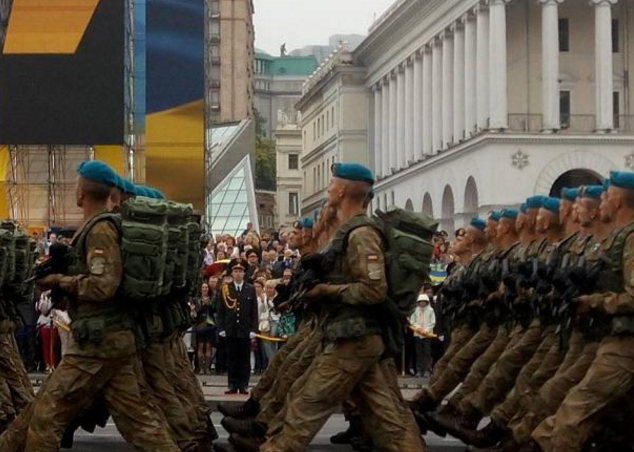 Військовий парад до 25-ї річниці Незалежності України відбувся у центрі Києва на Майдані в середу. У параді взяли участь чотири президенти України: чинний глава держави Петро Порошенко, а також його попередники - Леонід Кравчук, Леонід Кучма та Віктор Ющенко, за виключенням екс-президента-втікача Віктора Януковича. Серед почесних іноземних гостей – президент Польщі Анджей Дуда.