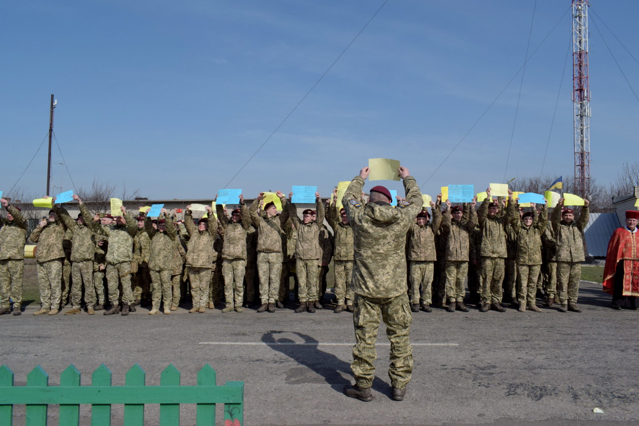 На завершення заходу понад сотня військовослужбовців підняла до неба жовті та сині аркуші з побажаннями воїнам від школярів міста Кропивницький, утворивши своєрідний живий оберіг над просторами охопленого боями сходу України.