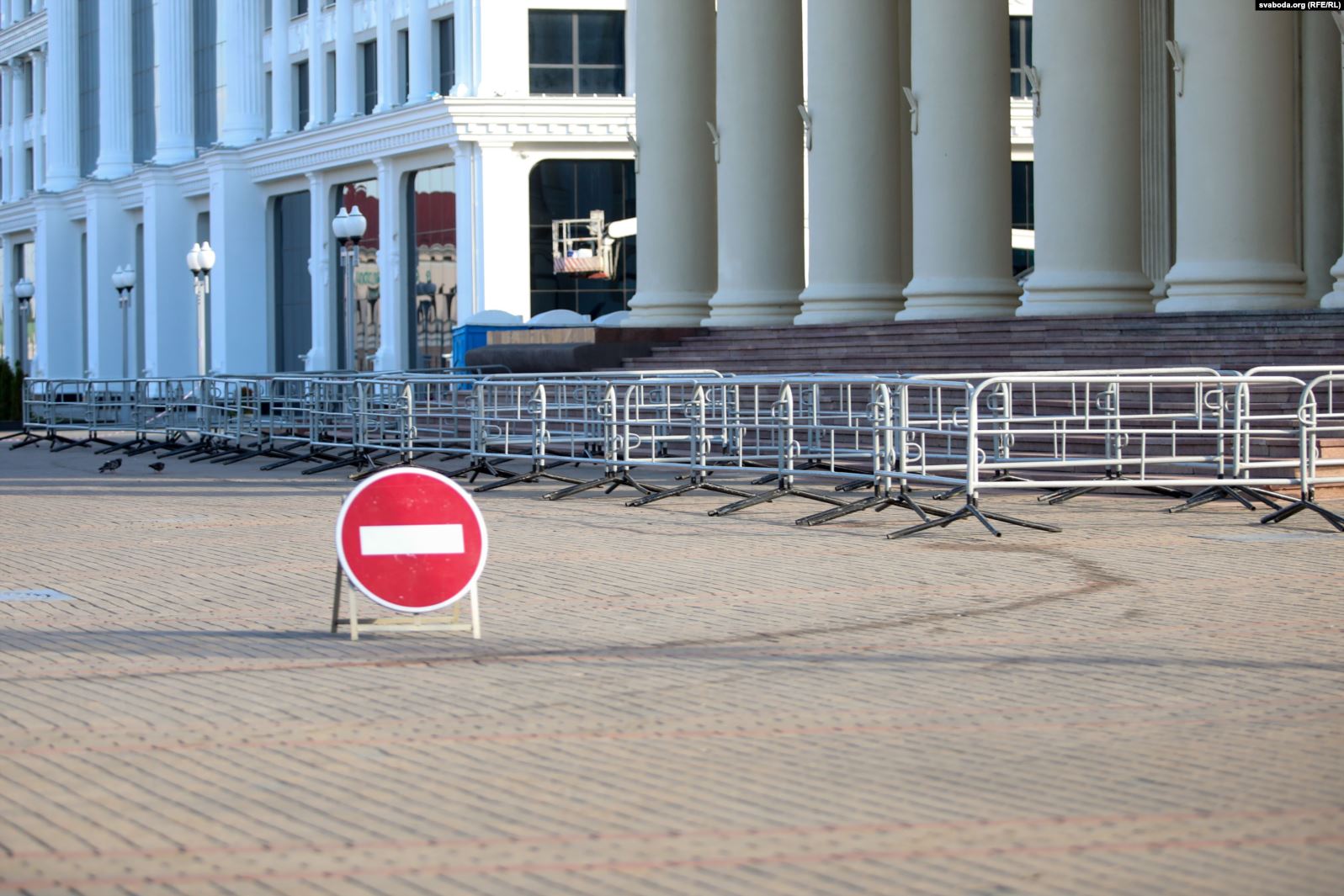 У центрі Мінська також огородили спеціальними турнікетами Палац Республіки та Палац профсоюзів.