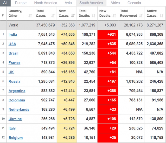 Як повідомляє «Україна молода», про це свідчать дані сайту Worldometers